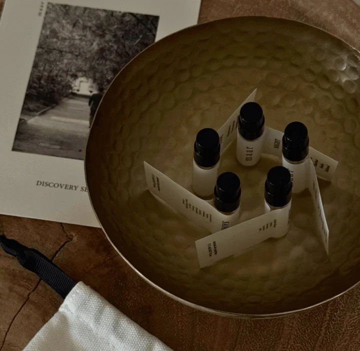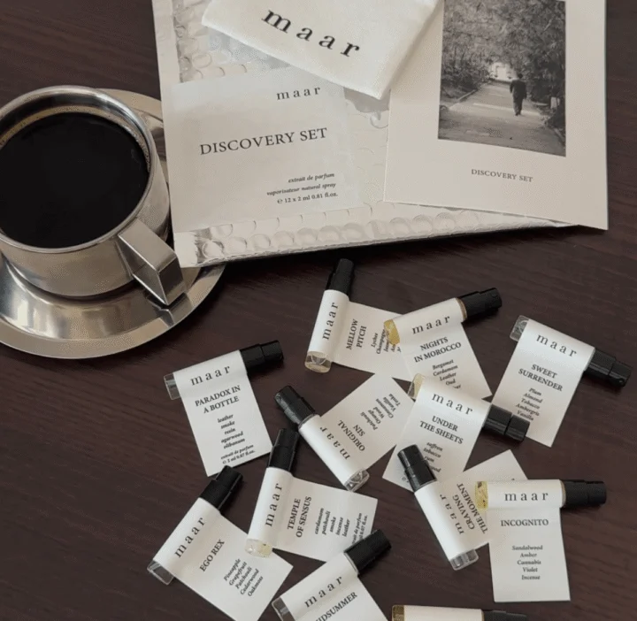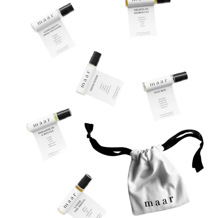 The set includes elegantly packaged miniature perfume extracts of your chosen maar fragrances. Enjoy 20% off any scents you decide to purchase — no matter how many you fall for.