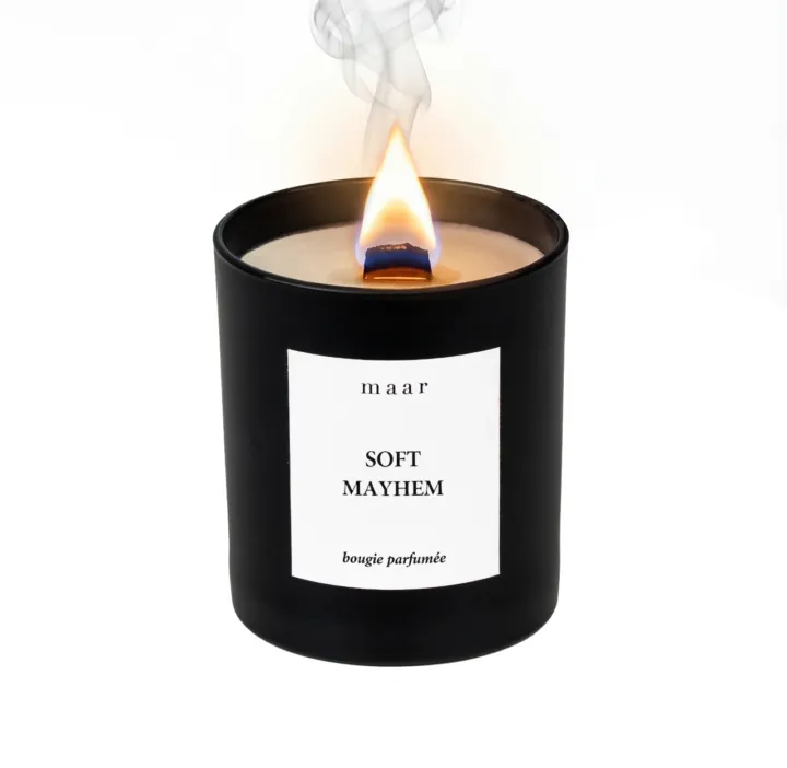SOFT MAYHEM — green apple illuminates the first inhale, while vanilla and caramel bring cozy, gentle warmth into the room. Notes of sandalwood, musk, and moss create a quiet space where you want to capture one more thought. A scent that reminds you that this is your safest place.