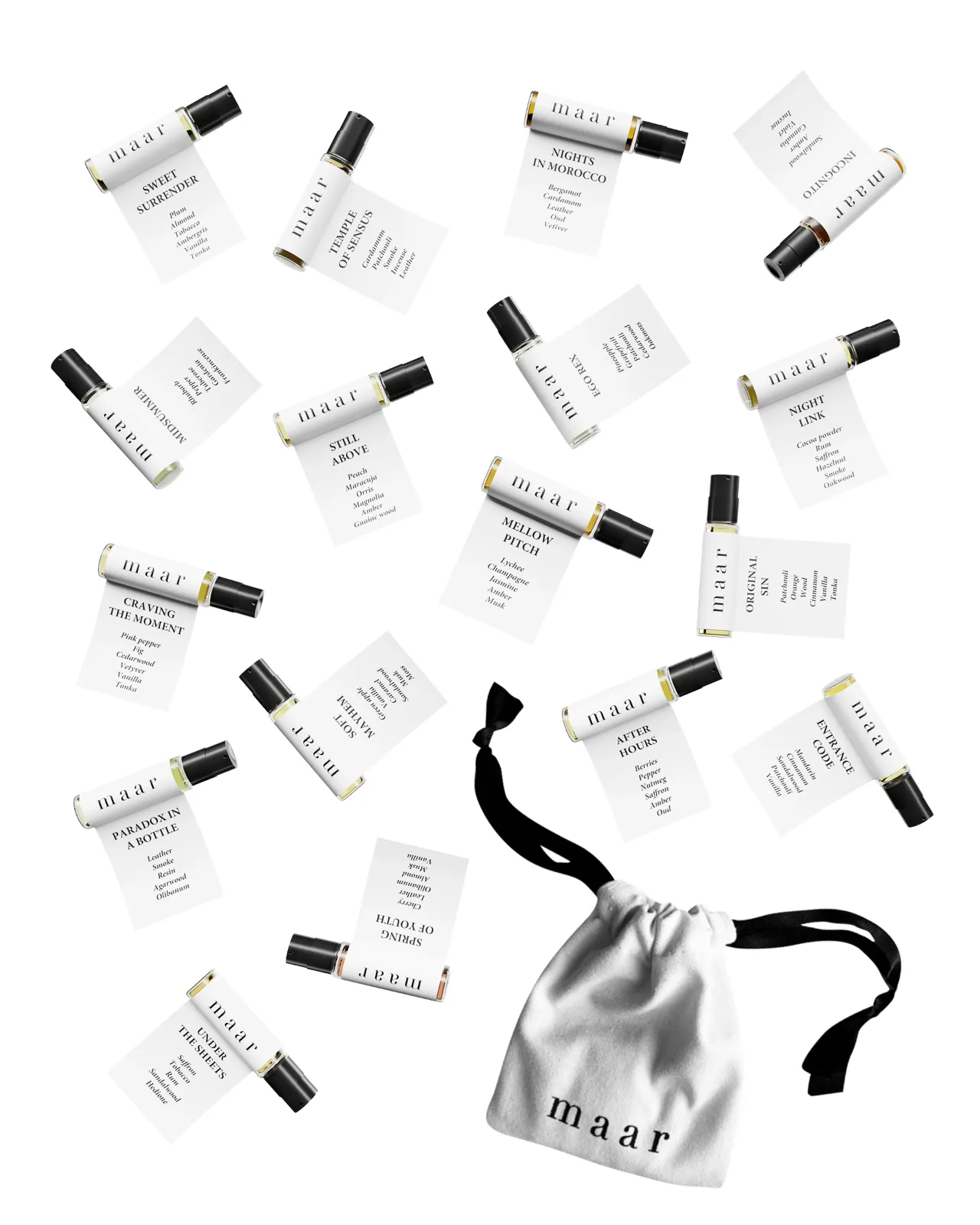 Pačiulis – Kartusis apelsinas – Kašmyro Mediena – Cinamonas – Vanilė – Tonka