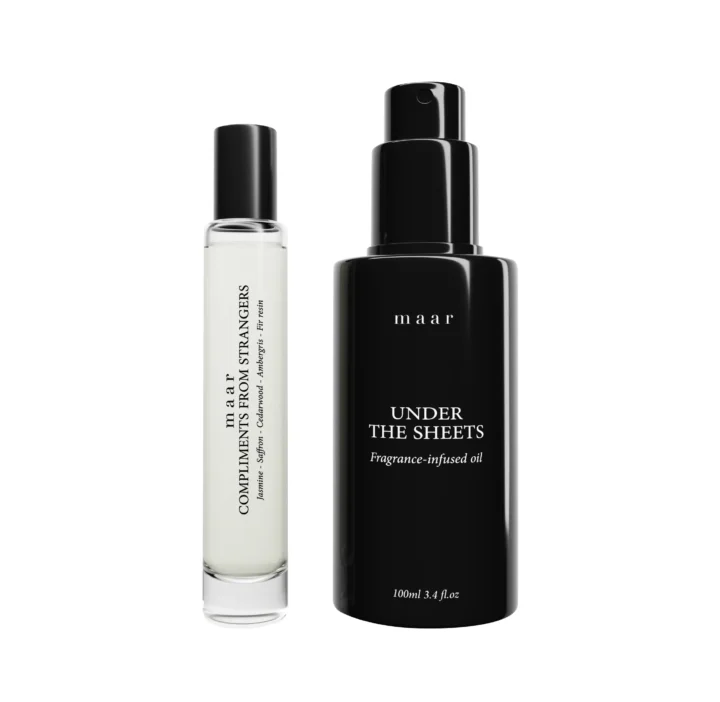 Ritualas, giliai maitinantis odą ir atgaivinantis mintis. Parfumuotas itin švarios sudėties kūno aliejus efektyviai drėkina kūną, vietoje lipnumo paliekantis subtilų aromatą. Purškiams kvepalų ekstraktas persipins su tavo oda ir aliejaus kvapu, sukurdamas neatrastas kvapų dermes.